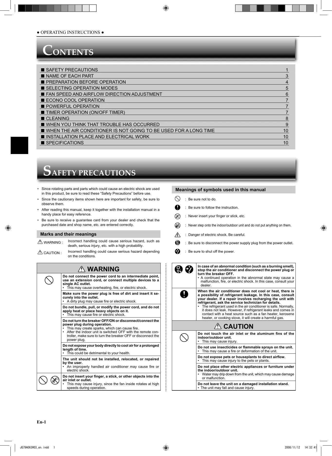 2008/11/12 14:32:41 SAFETY PRECAUTIONS CAUTION Do not operate switches with wet hands.