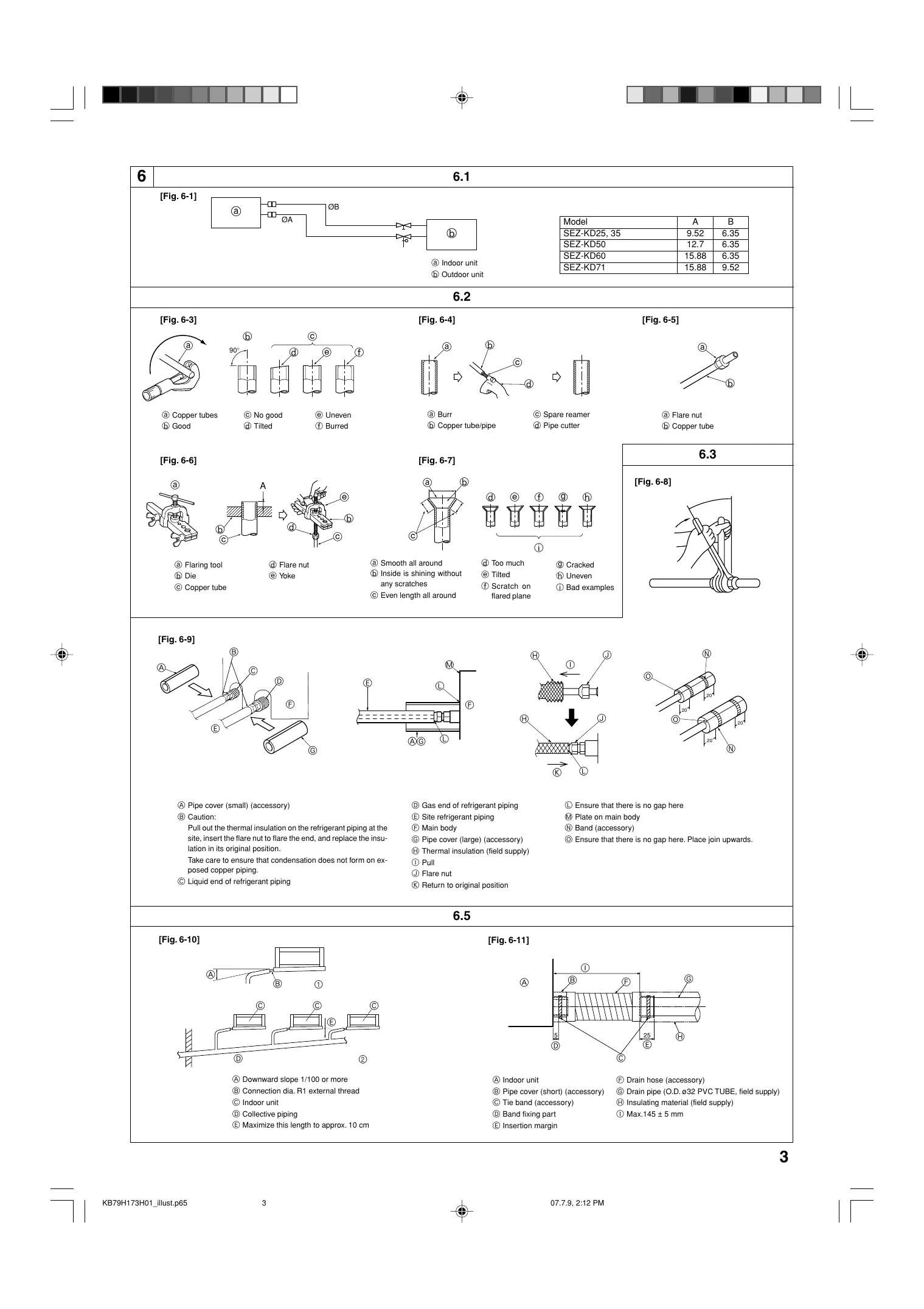B Caution: Pull out the thermal insulation on the refrigerant piping at the site, insert the flare nut to flare the end, and replace the insulation in its original position. Take care to ensure that condensation does not form on exposed copper piping. C Liquid end of refrigerant piping
