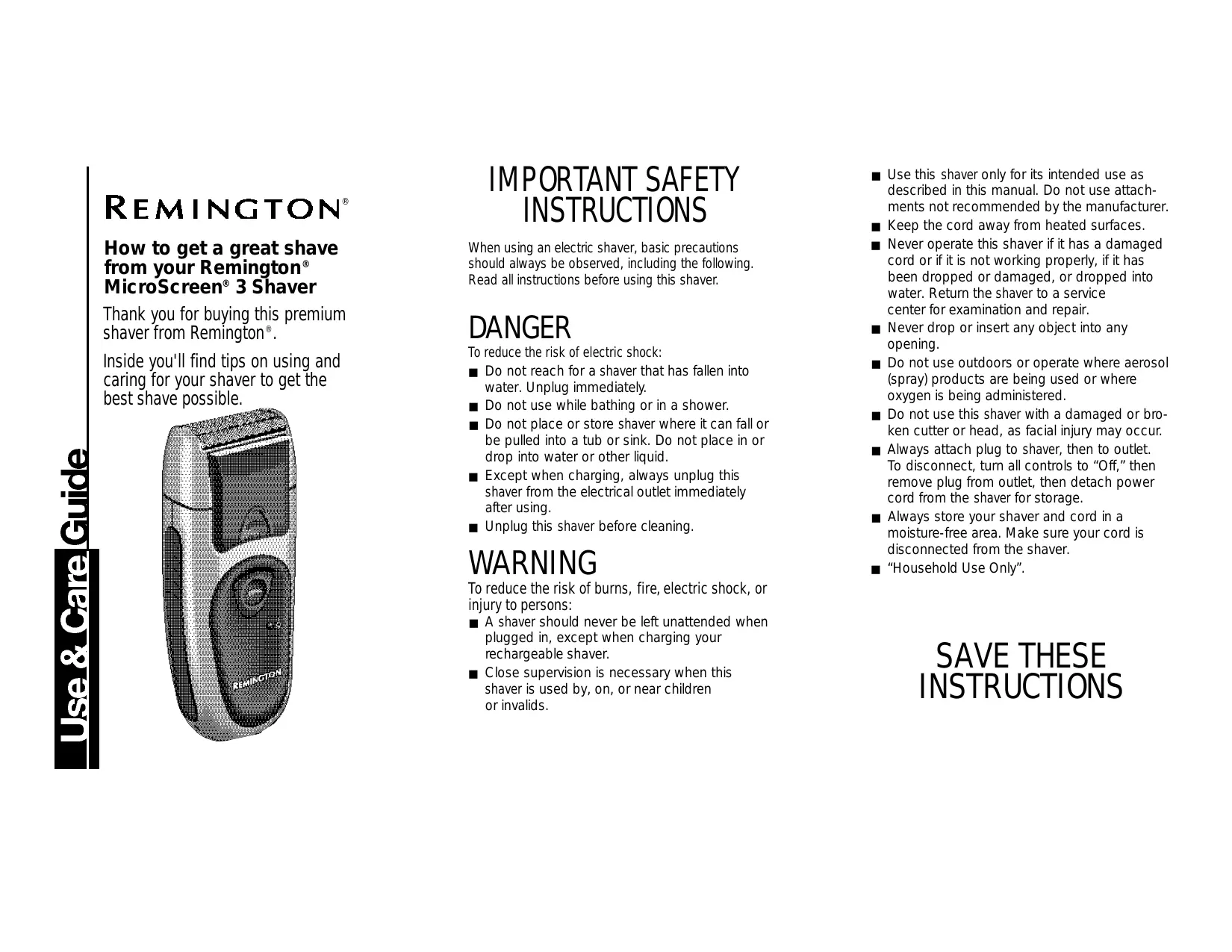 How to get a great shave from your Remington ® MicroScreen® 3 Shaver Thank you for buying this premium shaver from Remington ®. Inside you'll find tips on using and caring for your shaver to get the best shave possible.