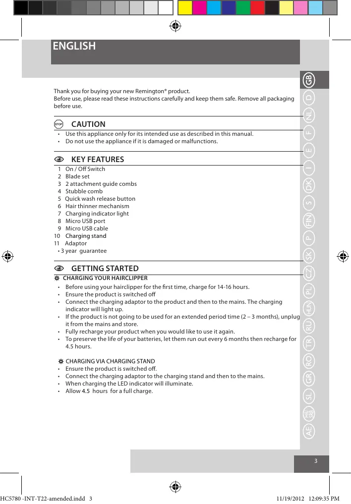 USER MANUAL HC5780 REMINGTON