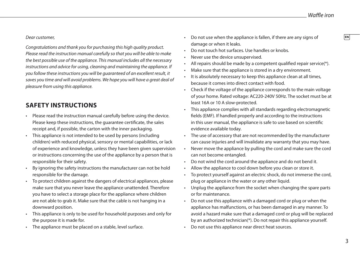 Congratulations and thank you for purchasing this high quality product. Please read the instruction manual carefully so that you will be able to make the best possible use of the appliance. This manual includes all the necessary instructions and advice for using, cleaning and maintaining the appliance. If you follow these instructions you will be guaranteed of an excellent result, it saves you time and will avoid problems. We hope you will have a great deal of pleasure from using this appliance.