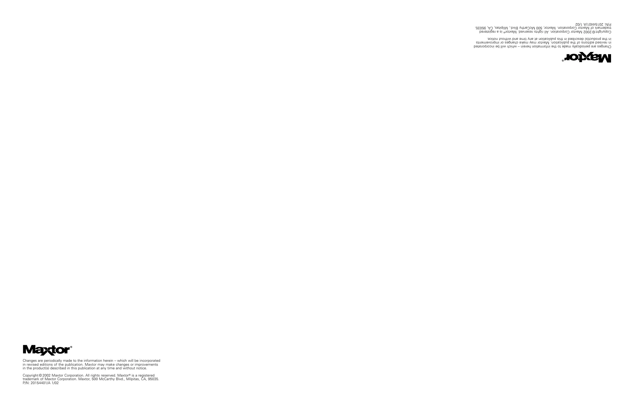 Personal Storage Installation Guide for Windows – 1394 Interface Contacting Maxtor European Technical Assistance and Customer Support Take advantage of the benefits! By registering your new Personal Storage product, you’ll have the option to receive product updates, special offers, and important information about other data storage solutions from Maxtor. Simply point your web browser to: www.maxtor.com – go to the product registration page, and complete the short questionnaire. Multilingual Support: Telephone: Maxtor’s warranty obligations are limited to the terms set forth: Maxtor warrants only to the original consumer purchaser that new Maxtor Personal Storage products will be free from defects in material and workmanship for 1 year from the date of original purchase. Indigita has warranted to Maxtor that the Personal Storage Installation Software materially conforms to the specifications. Any other software product which may be distributed herewith are “AS IS” and without any warranty. For a replacement Personal Storage product, the warranty on the replacement device is the remainder of the warranty on the original device or 90 days, whichever is longer. If you discover a defect, Maxtor will, at its option, repair or replace the product at no charge to you, provided you return it during the warranty period, with transportation charges prepaid, to Maxtor in Ireland, Singapore or the USA. Personal Storage products must be properly packaged in Maxtor packaging or Maxtor approved packaging to obtain warranty service. Before returning a Maxtor product, please contact Maxtor at: +353 1 204 1111 (in Europe) or 1-800-2MAXTOR (in U.S.) to obtain a Return Material Authorization (RMA) number. A copy of the receipt or a bill of sale bearing the appropriate Maxtor serial number and model number may be required for warranty service.The warranty applies only to the Maxtor products that can be identified by the Maxtor trademark, trade name, serial number or logo affixed to them. Maxtor does not warrant any product that is not manufactured by, for or with permission from Maxtor. This warranty is not applicable to: Abnormal wear and tear; Abuse, unreasonable use, mistreatment, or neglect; Damage caused during installation of the Product; Damage caused by the equipment or system with which the product is used; Damage caused by modification or repair not made or authorized by Maxtor; Product whose Maxtor Serial Number has been removed or defaced; Damage caused by liquids in the product case; Damage to the products’ interface or power connectors; Damage caused by use of non-Maxtor packaging; Damage caused by improper or improperly used packaging; Products that are determined to be stolen. THIS WARRANTY AND REMEDIES SET FORTH ABOVE ARE EXCLUSIVE AND IN LIEU OF ALL OTHERS,WHETHER ORAL OR WRITTEN, EXPRESSED OR IMPLIED. MAXTOR SPECIFICALLY DISCLAIMS ANY AND ALL IMPLIED WARRANTIES, INCLUDING,WITHOUT LIMITATION, WARRANTIES OF MERCHANTABILITY AND FITNESS FOR A PARTICULAR PURPOSE AND AGAINST INFRINGEMENT. additionally, maxtor does not warrant that the personal storage installation software distributed in the Personal storage kit will meet your requirements noR the performance or results that the operation of the program will be uninterrupted or error free. No Maxtor dealer, agent or employee is authorized to make any modification, extension or addition to this warranty. MAXTOR IS NOT RESPONSIBLE FOR SPECIAL, INCIDENTAL, INDIRECT OR CONSEQUENTIAL DAMAGES RESULTING FROM ANY BREACH OF WARRANTY, OR UNDER ANY OTHER LEGAL THEORY, INCLUDING BUT NOT LIMITED TO LOSS OF DATA, LOSS OF PROFITS, DOWNTIME, GOODWILL, DAMAGE OR REPLACEMENT OF EQUIPMENT AND PROPERTY, AND ANY COSTS OF RECOVERING, PROGRAMMING OR REPRODUCING ANY PROGRAM OR DATA STORED IN OR USED WITH MAXTOR DISK DRIVES OR MAXTOR PERSONAL STORAGE PRODUCTS CONTAINING MAXTOR DISK DRIVES or any software product distributed therewith. Some states/jurisdictions do not allow the exclusion or limitation of incidental or consequential damages or exclusions of implied warranties, so the above limitations or exclusions may not apply to you.This warranty gives you specific legal rights, and you may also have other rights that vary from jurisdiction to jurisdiction. Maxtor may make changes or improvements in the product(s) described in this publication at any time and without notice.This product tested to comply with FCC standards for home or office use. Copyright © 2002 Maxtor Corporation. All rights reserved. Printed in Holland. 1/02. Maxtor® is a registered trademark of Maxtor Corporation. Other brands or products are trademarks or registered trademarks of their respective holders. Maxtor on the Internet Home Page: http://www.maxtor.com NEDERLANDS E-mail: Fax: Product Warranty English, French and German +353 1 204 1111 (all countries) 08 25 31 43 22 (in France) 01801 62 98 67 (in Germany) www.maxtor.com +353 1 286 1419 DANSK Technical assistance and customer support is available from 8.30am to 5pm (GMT) Monday to Thursday and from 8.30am to 4pm (GMT) Friday. ENGLISH 6 Product Registration MaxFax ® Service Use a touch-tone phone to order technical documents from our 24 hour automated fax retrieval system. +353 1 204 1122 US & Canada Technical Assistance and Customer Support Maxtor on the Internet Homepage: SUOMI 1-800-262-9867 Product Support and Customer Service Agents are available from 6 a.m. to 6 p.m. (mountain time) Monday - Friday. FRANÇAIS Telephone: http://www.maxtor.com Maxtor via E-mail Maxtor Outside the U.S. and Canada Customer Support: MaxInfo: MaxFax®: 303-678-2015 303-678-2015, press 1 303-678-2618 English +61-2-9369-3662 +61-2-9369-2082 +61-2-9369-4733 +61-2-9369-4293 Customer Service Email page PORTUGUÊS Asia-Pacific Technical Assistance ITALIANO Australia & Asia-Pacific DEUTSCH Customer Service E-mail: www.maxtor.com http://www.maxtor.com/contactUs/emailcs.html ESPAÑOL
