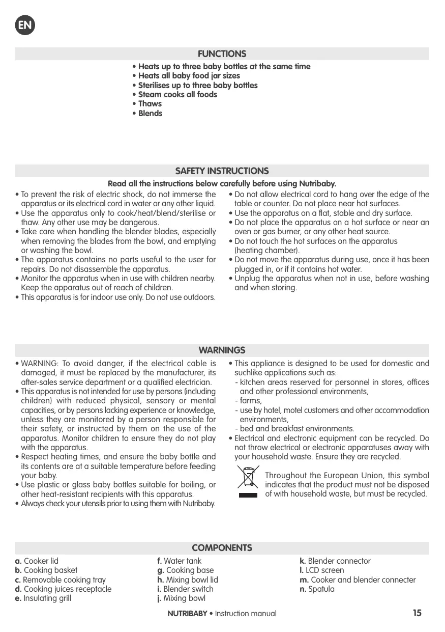 SAFETY INSTRUCTIONS Read all the instructions below carefully before using Nutribaby.