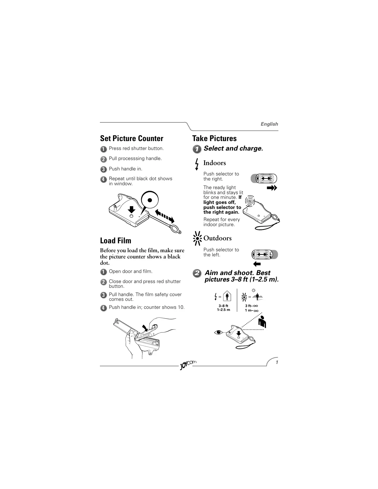 Set Picture Counter Press red shutter button. Pull processsing handle.