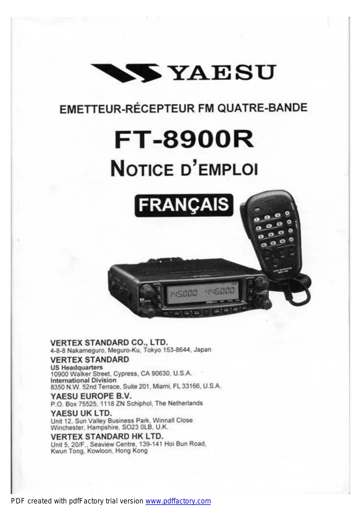Download the instructions for your Émetteur-récepteur radio VHF/UHF in PDF format for free! Find your manual FT-8900R - YAESU and take your electronic device back in hand. On this page are published all the documents necessary for the use of your device. FT-8900R by YAESU.