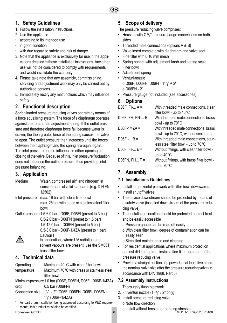 Environmental and Combustion Controls Division of Honeywell Technologies Sàrl, Ecublens, Route du Bois 37, Switzerland by its Authorised Representative Honeywell GmbH MU1H-1002GE23 R0108 Subject to change