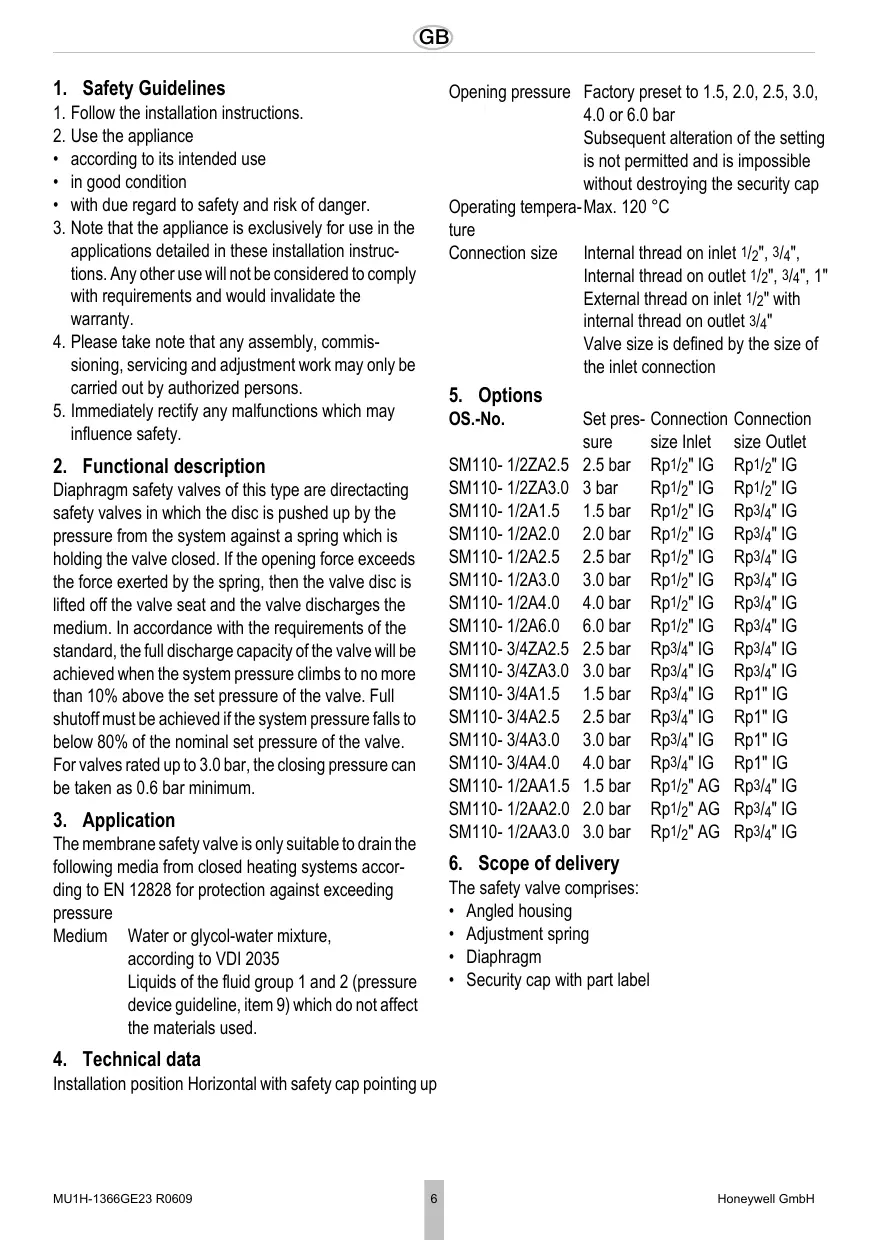 Environmental and Combustion Controls Division of Honeywell Technologies Sàrl, Rolle, Z.A. La Pièce 16, Switzerland by its Authorised Representative Honeywell GmbH MU1H-1366GE23 R0609 Subject to change © 2009 Honeywell GmbH