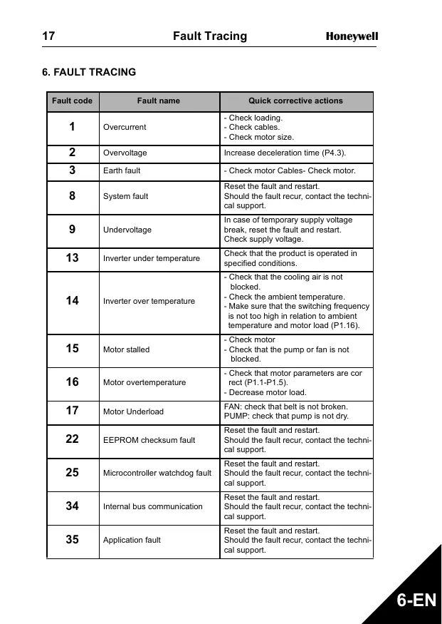 Conformé aux exigences de la catégorie C2 de la norme produit EN 61800-3 (Honeywell classe H: conforme aux exigences d'une installation normale en bâtiment).