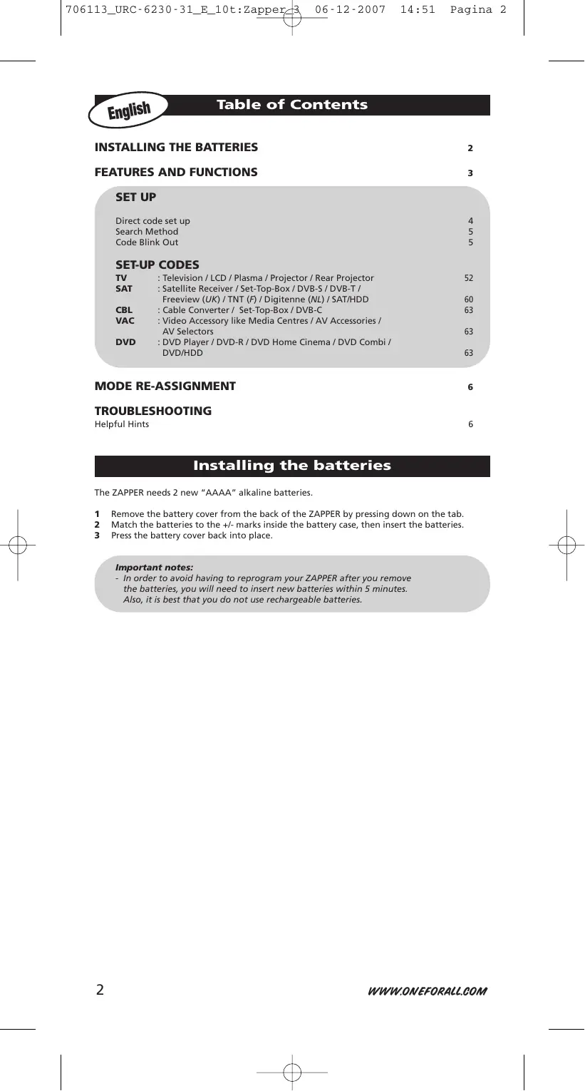 Find the device manual for free URC 6230 ONEFORALL in PDF.