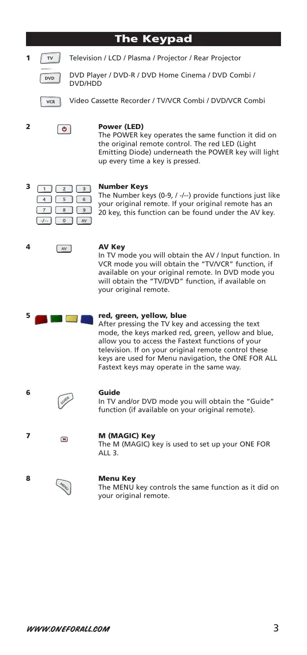 The M (MAGIC) key is used to set up your ONE FOR ALL 3.