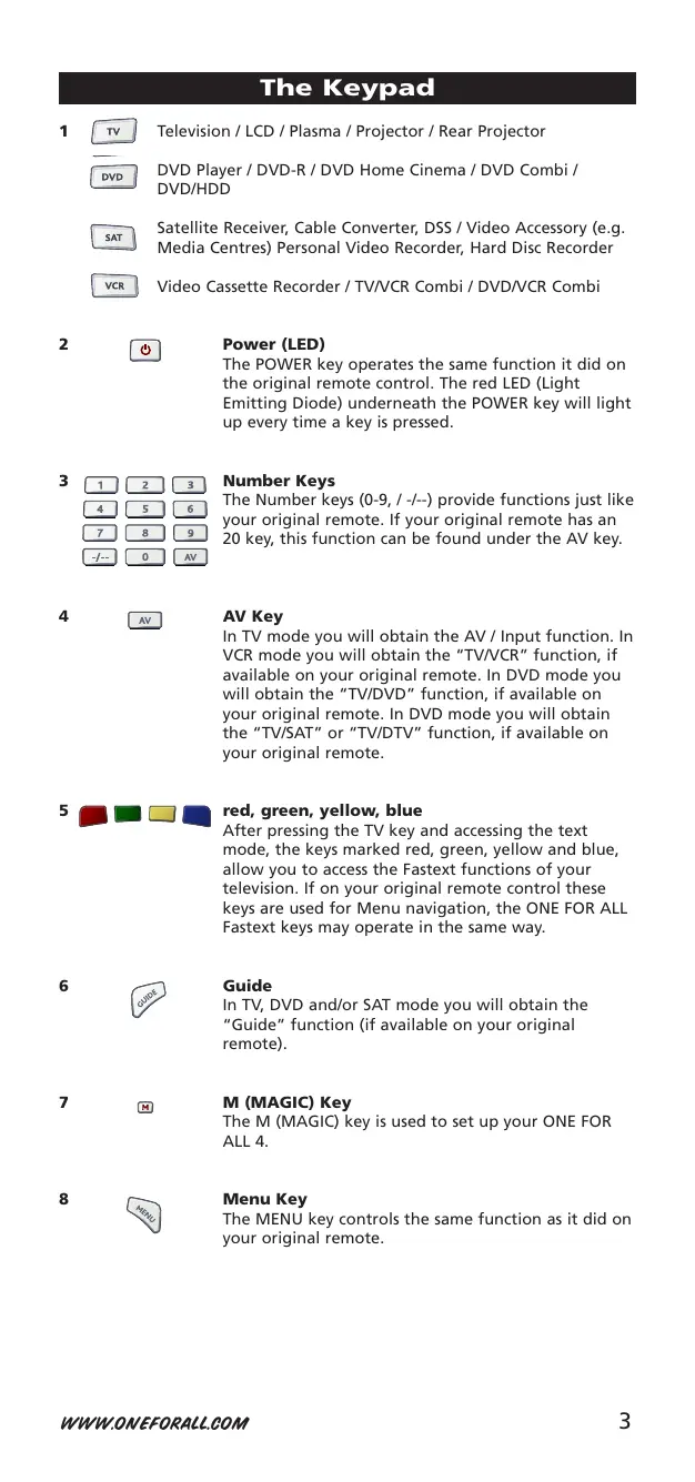 The M (MAGIC) key is used to set up your ONE FOR ALL 4.