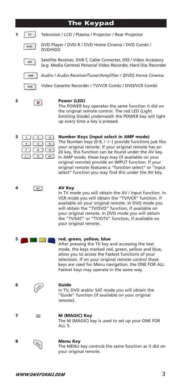 The M (MAGIC) key is used to set up your ONE FOR ALL 5.