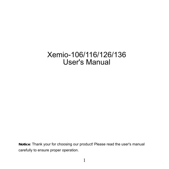 Xemio-106/116/126/136 User's Manual Notice: Thank your for choosing our product! Please read the user's manual carefully to ensure proper operation.
