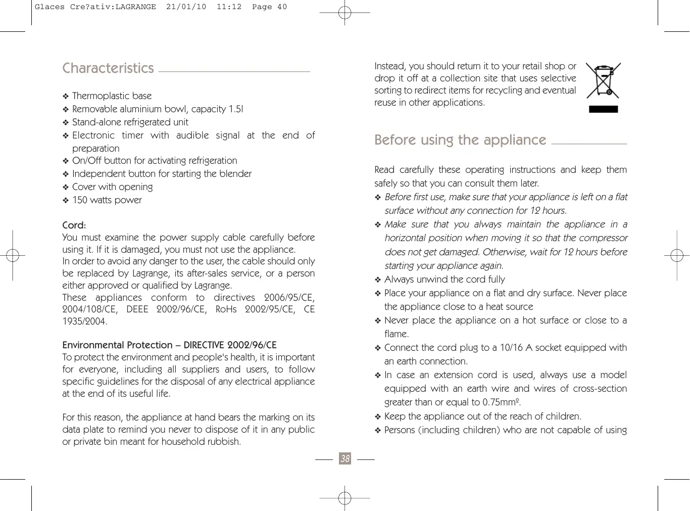 Find the device manual for free 419002 GLACES CREATIV' LAGRANGE in PDF.
