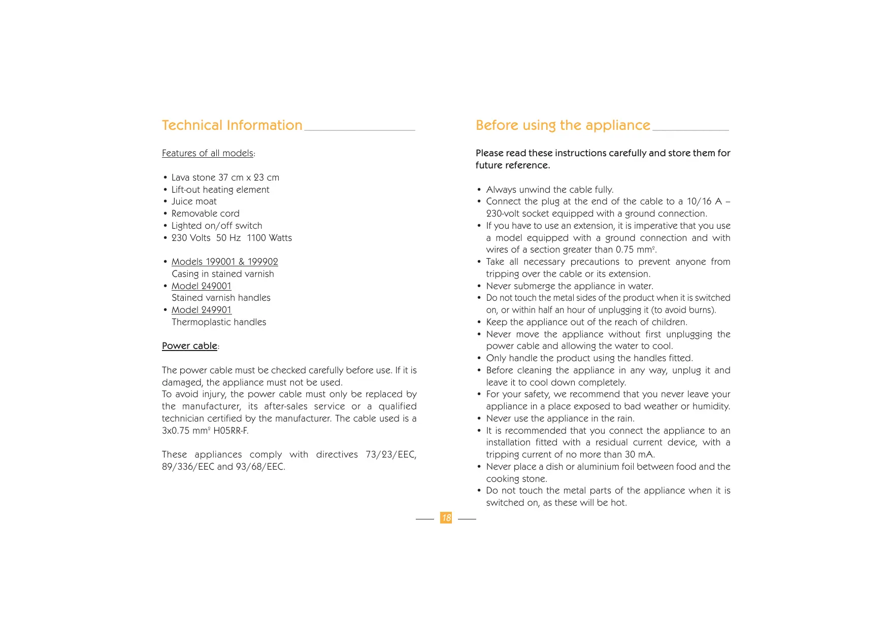 Caractéristiques techniques - Steengrillen “A LA ACAPULCO” - Before using the appliance
