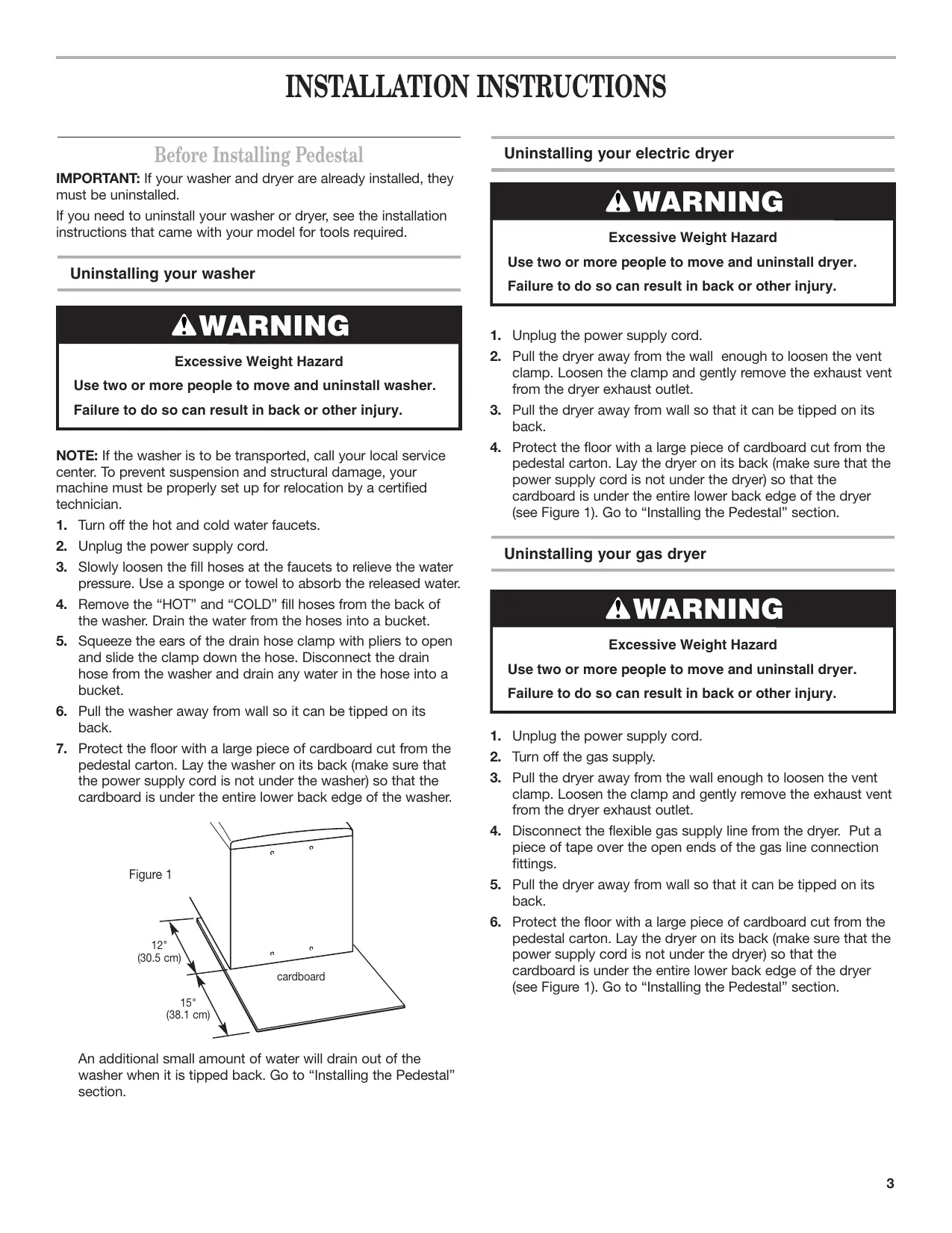 IMPORTANT: If your washer and dryer are already installed, they must be uninstalled.