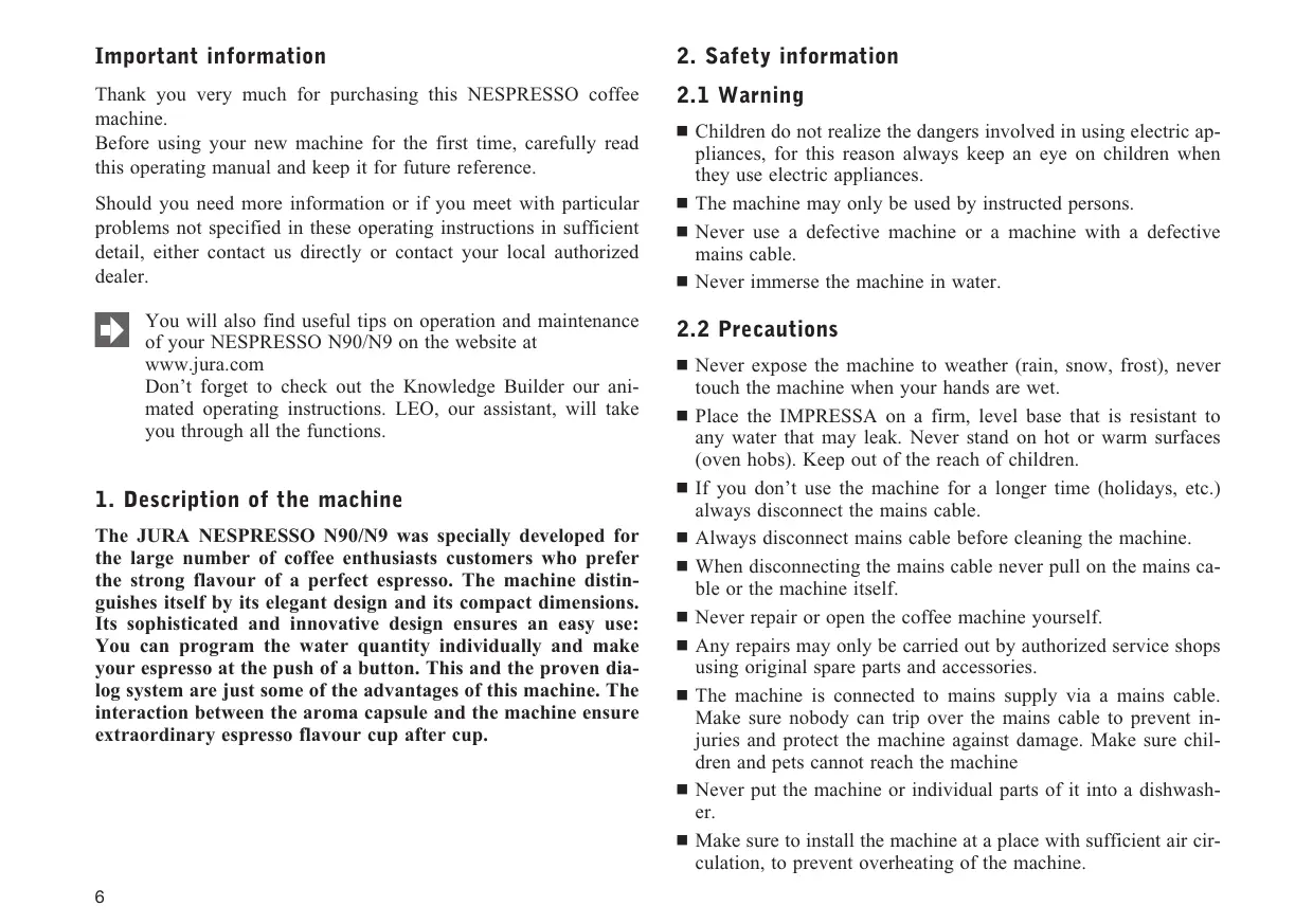 Download the instructions for your Machine à café in PDF format for free! Find your manual NESPRESSO N9 - NESPRESSO N90 - JURA and take your electronic device back in hand. On this page are published all the documents necessary for the use of your device. NESPRESSO N9 - NESPRESSO N90 by JURA.