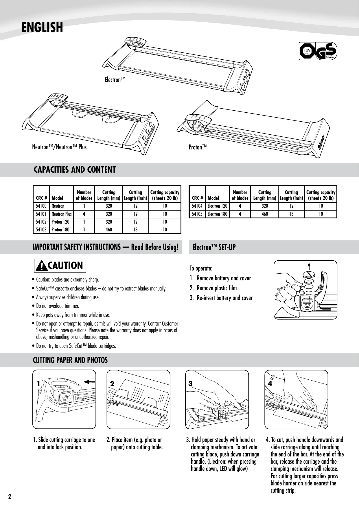 ELECTRON - FELLOWES - Free user manual and instructions