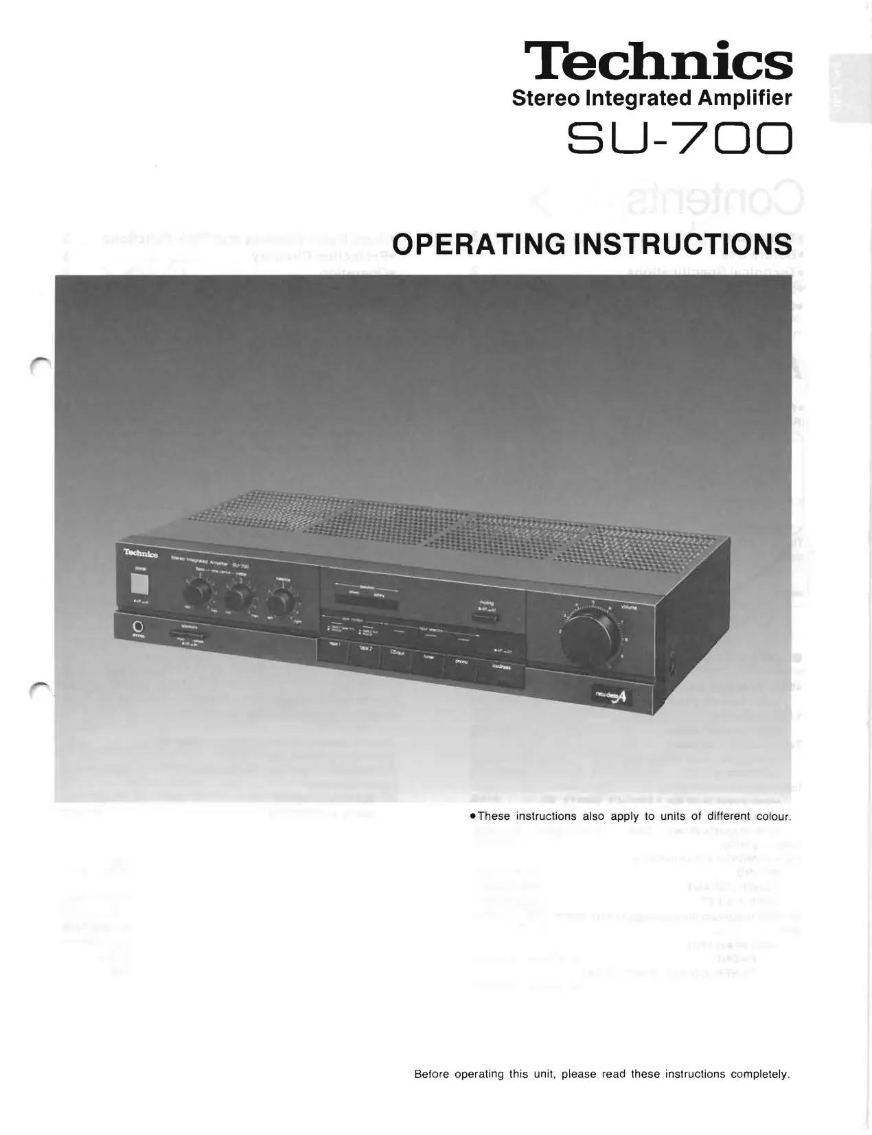 Stereo Integrated Amplifier SU-700 OPERATING INSTRUCT'IONS eThese instructions also apply to units of different colour. Before operating this unit, please read these instructions completely.