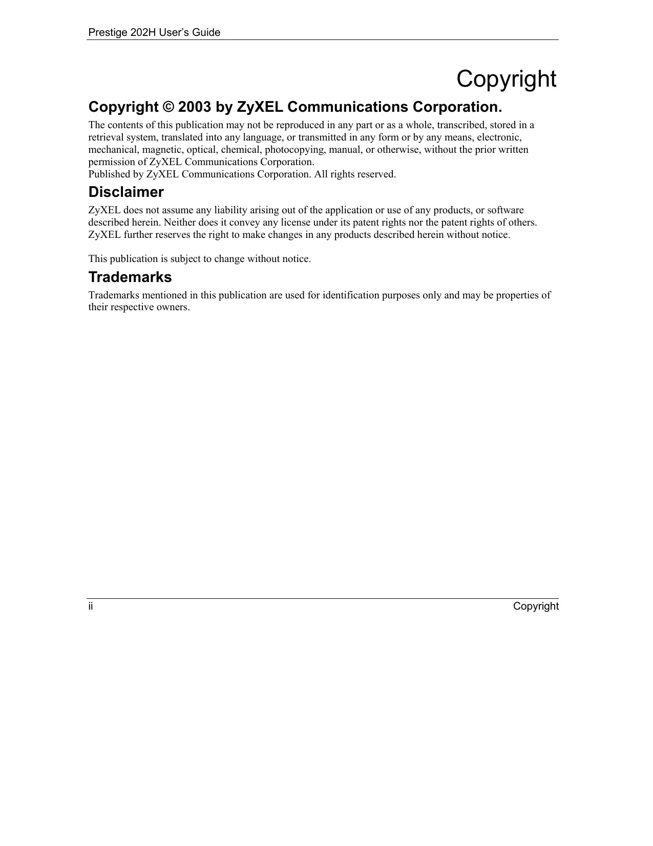 Copyright © 2003 by ZyXEL Communications Corporation.