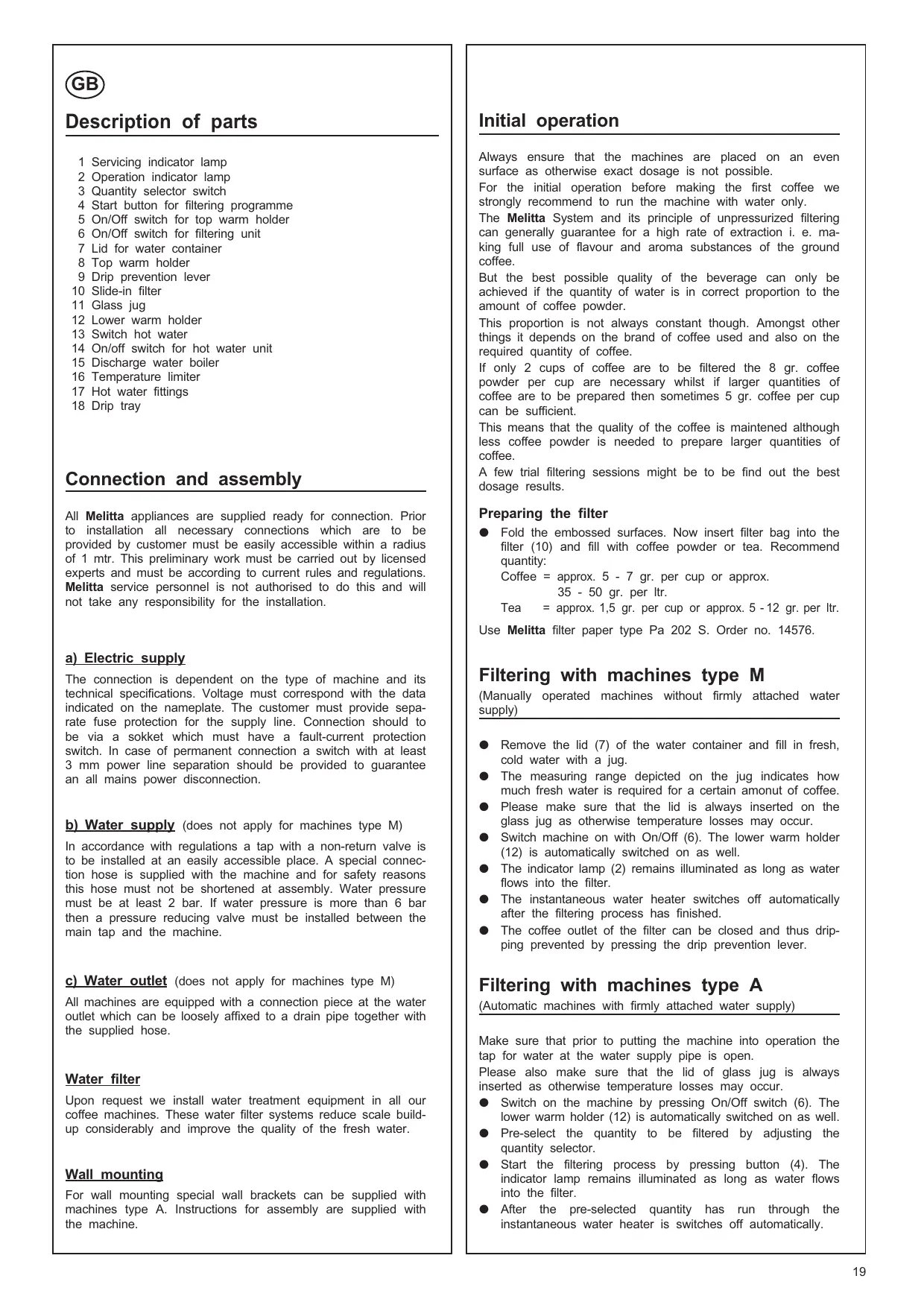 USER MANUAL 190 MELITTA
