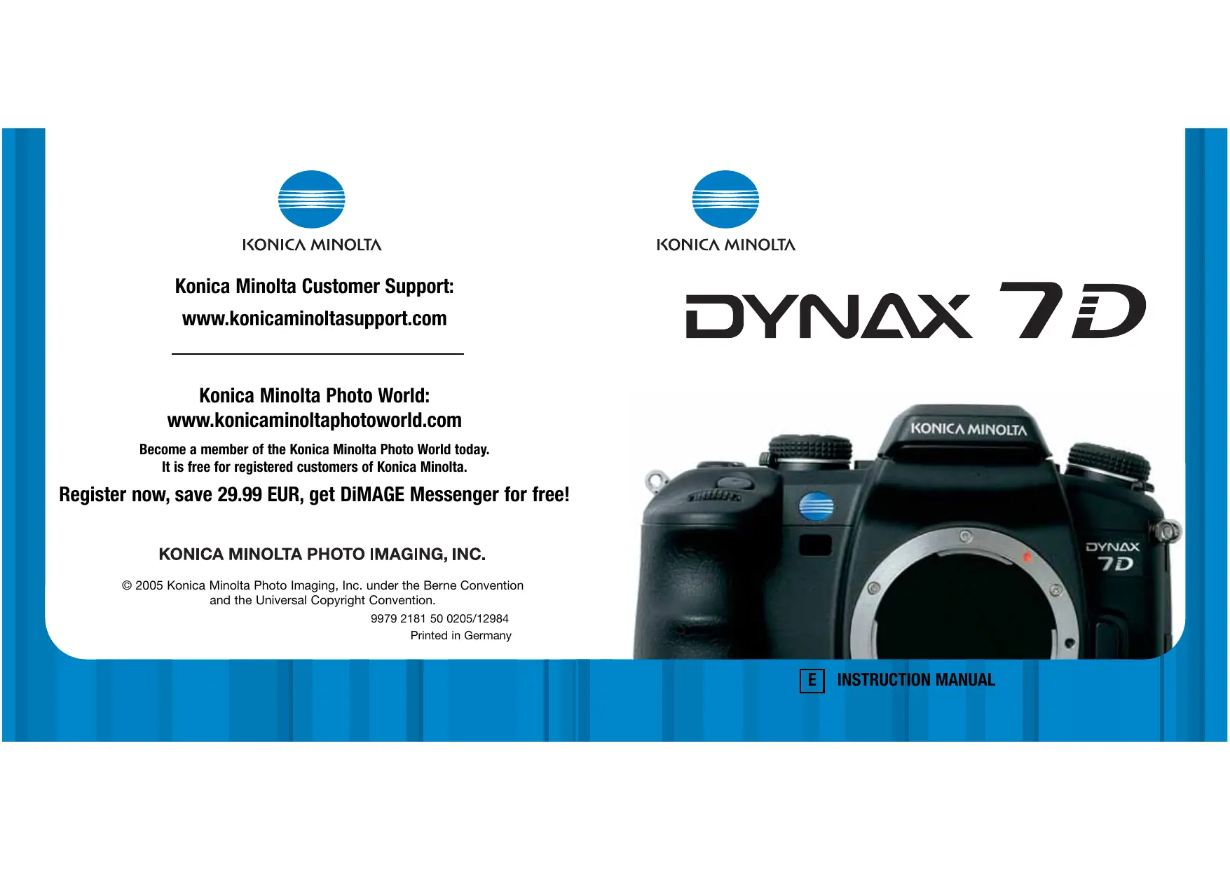 Find the device manual for free DYNAX 7D MINOLTA in PDF.