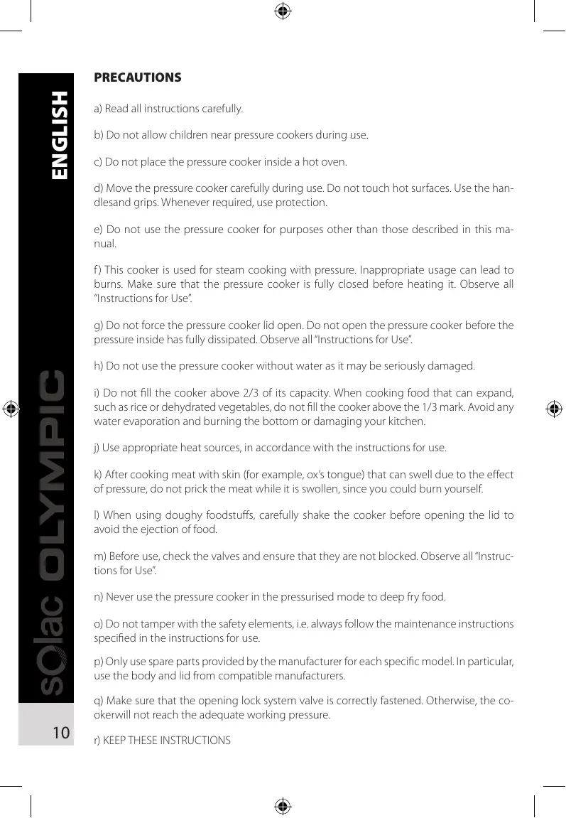 OLYMPIC - Pressure Cooker SOLAC - Free user manual and instructions
