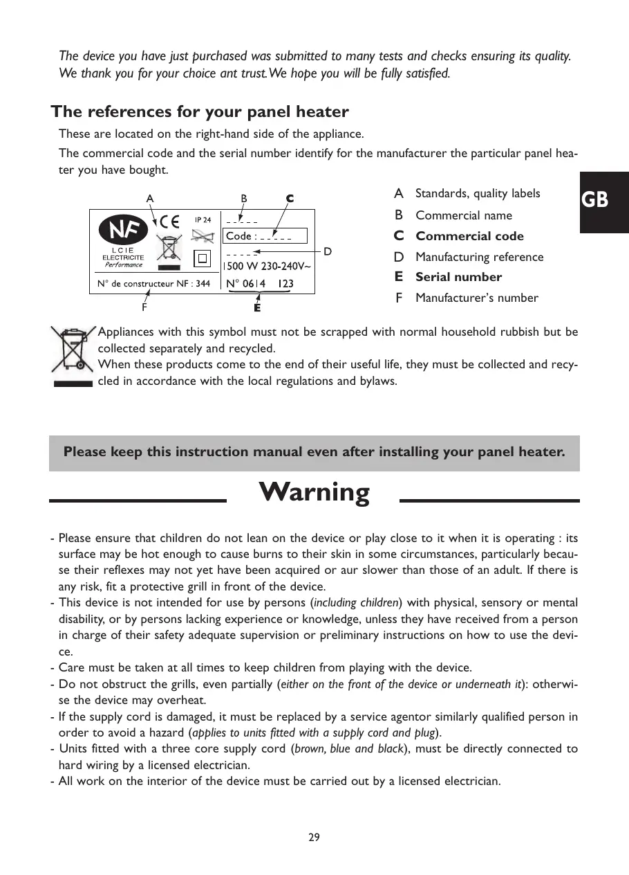 Les détériorations provenant d'une installation non-conforme, d'un réseau d'alimentation ne respectant pas la norme NF EN 50 160, d'un usage anormal où du non-respect des prescriptions de ladite notice ne sont pas couvertes par la garantie