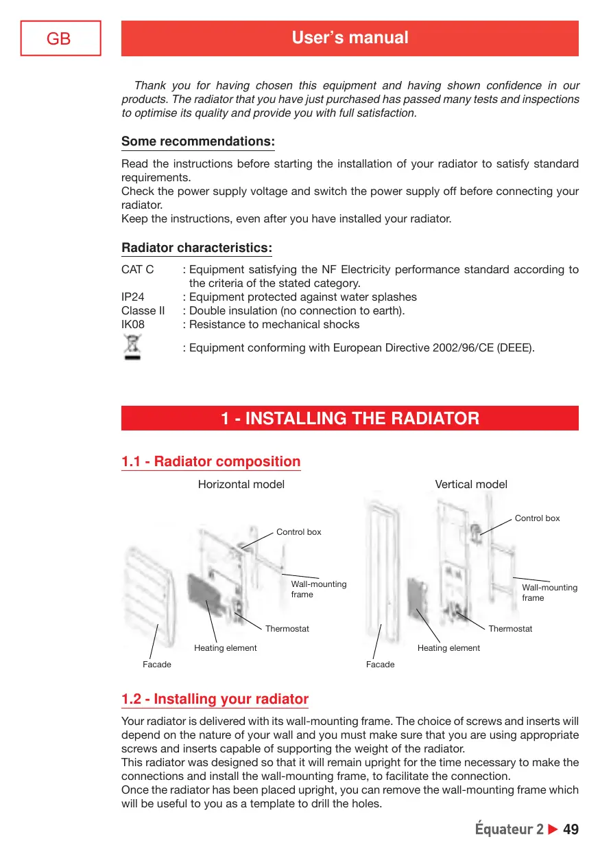 EQUATEUR 2 - THERMOR - Free user manual and instructions