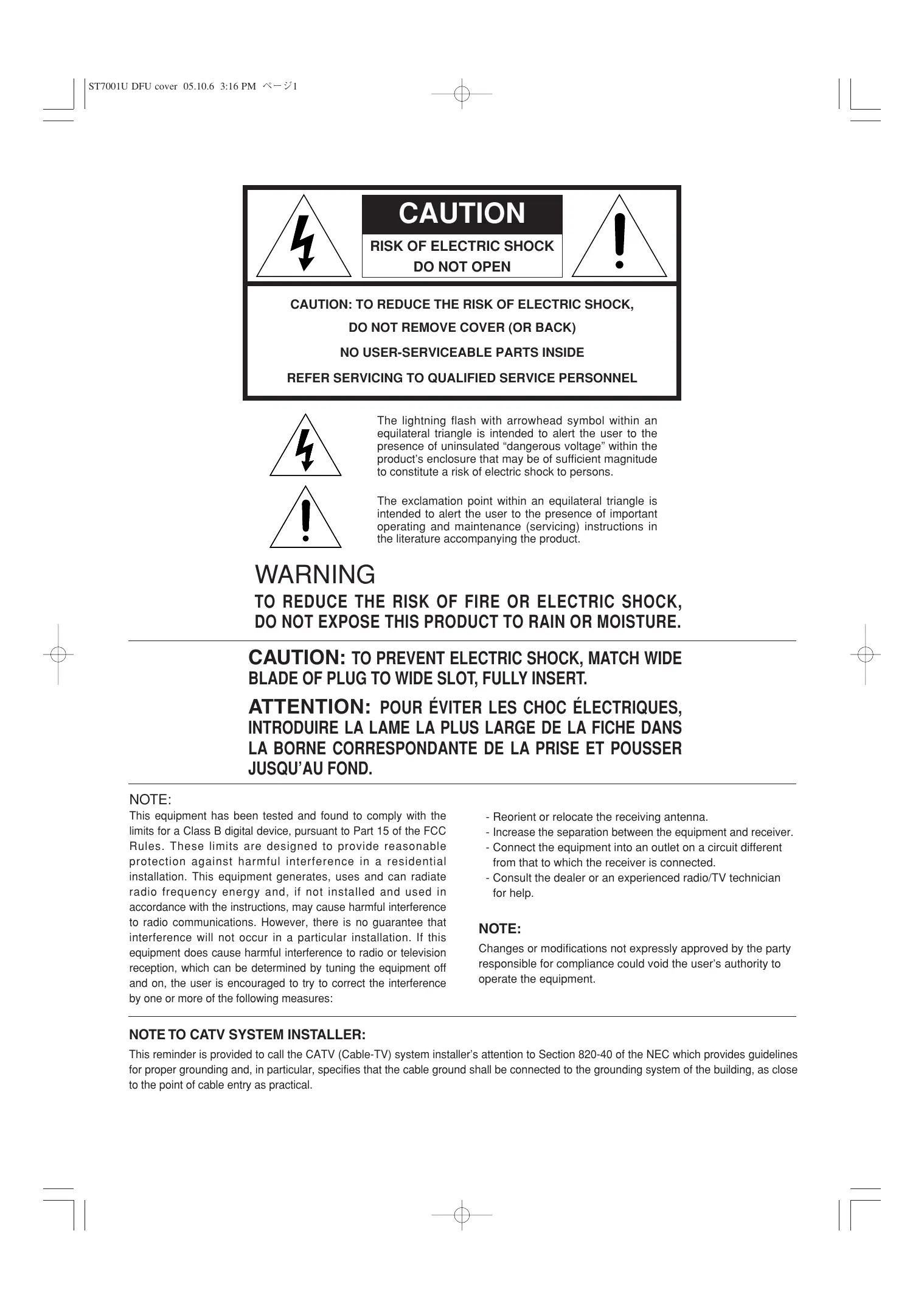 Download the instructions for your Tuner audio in PDF format for free! Find your manual ST7001 - MARANTZ and take your electronic device back in hand. On this page are published all the documents necessary for the use of your device. ST7001 by MARANTZ.