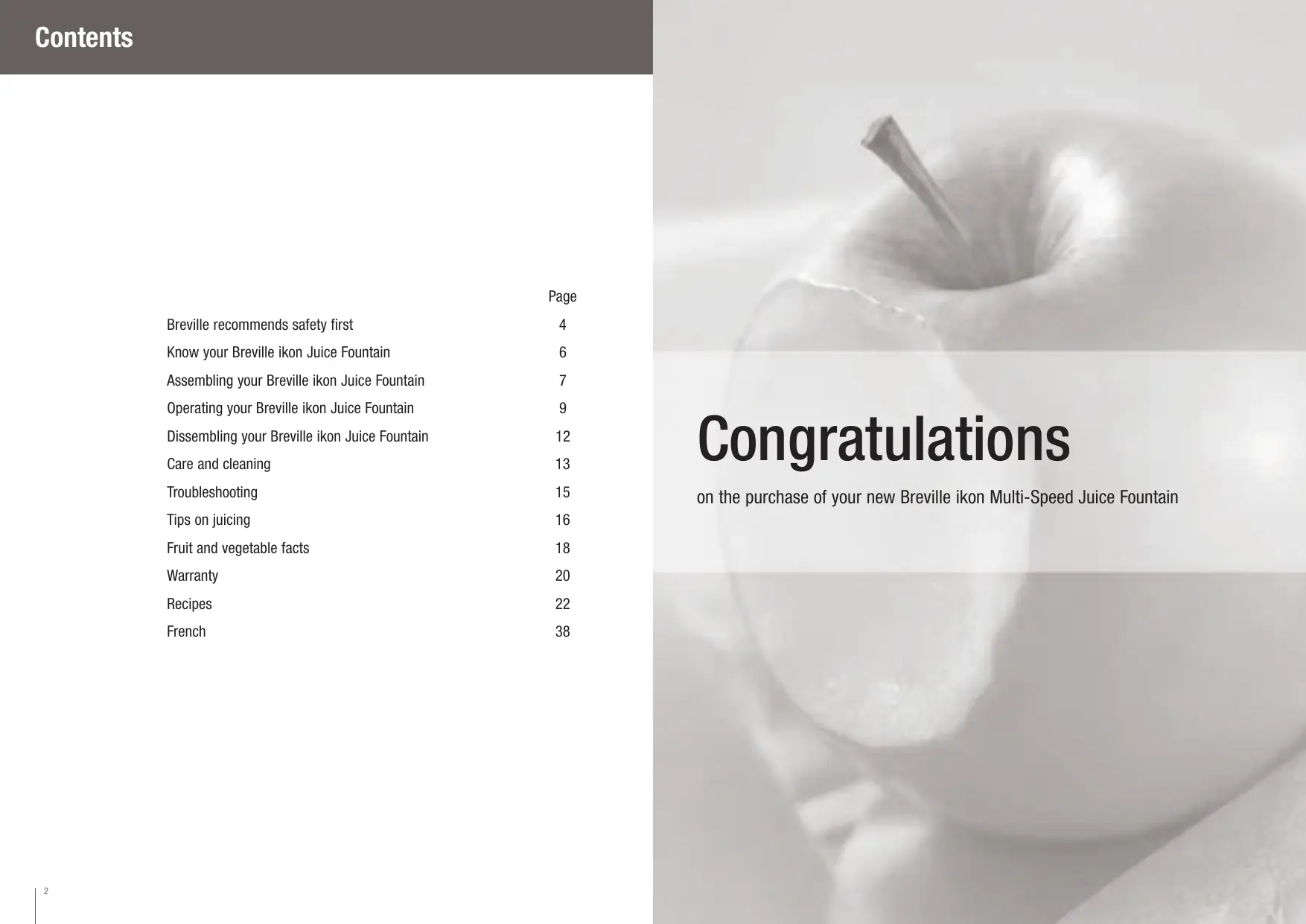 on the purchase of your new Breville ikon Multi-Speed Juice Fountain Tips on juicing
