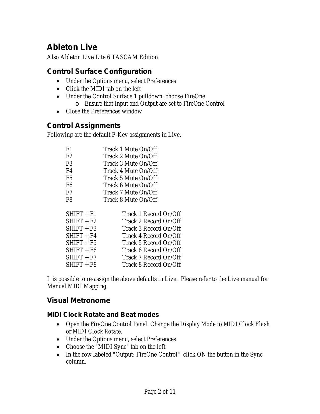 Ableton Live. Control Surf. Control A ssignments. Visual Metronome …..