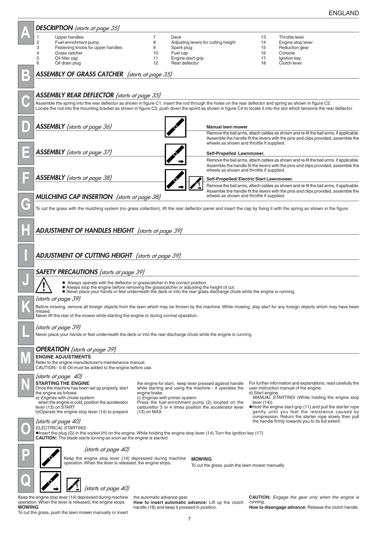 ASSEMBLY OF GRASS CATCHER (starts at page 35)