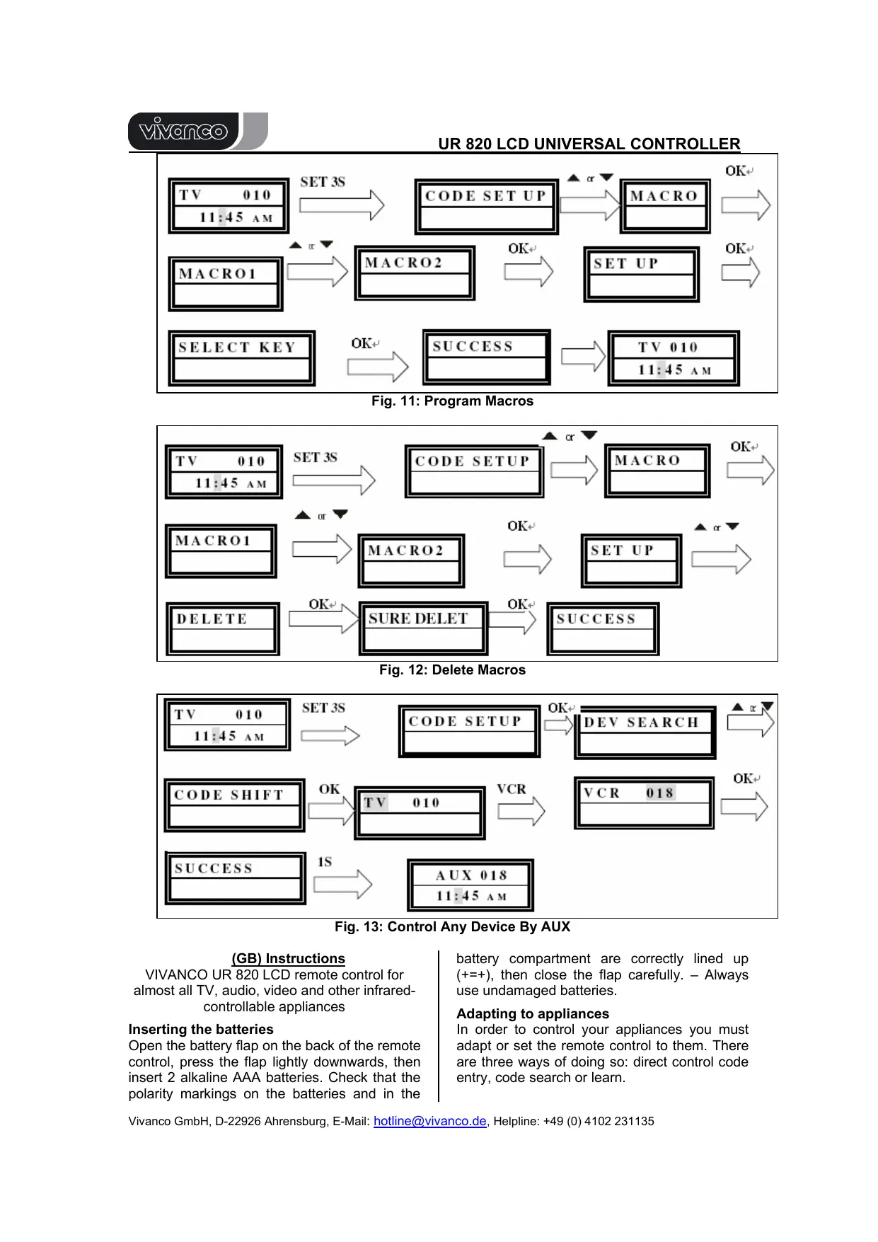 Find the device manual for free UNIVERSAL CONTROLLER UR 820 LCD VIVANCO in PDF.