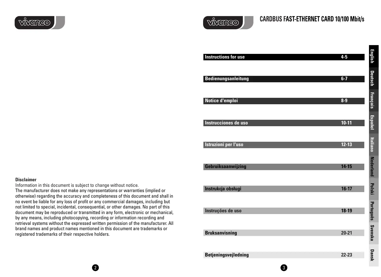 Find the device manual for free CARDBUS FAST-ETHERNET CARD 10-100MB VIVANCO in PDF.