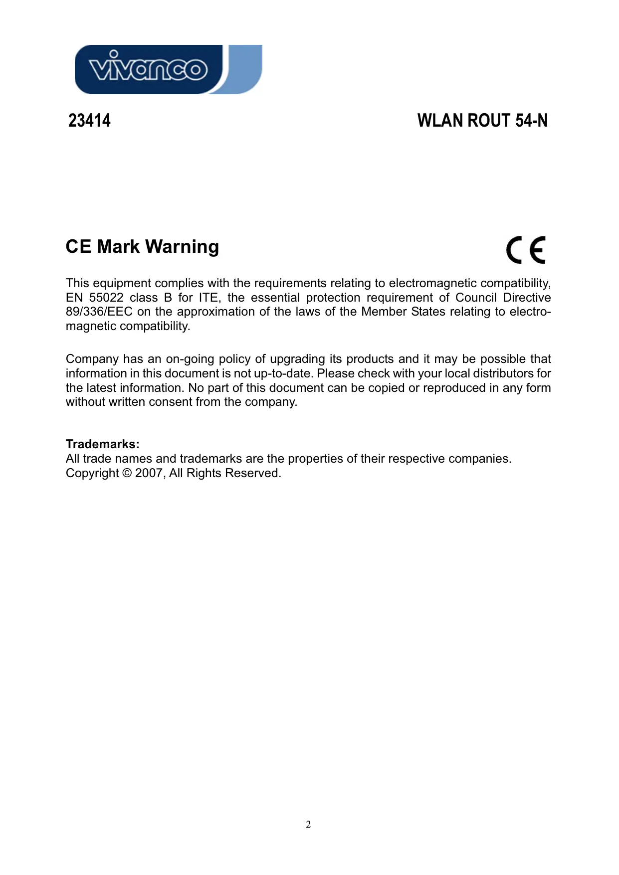 Find the device manual for free WLAN ROUT 54-N VIVANCO in PDF.