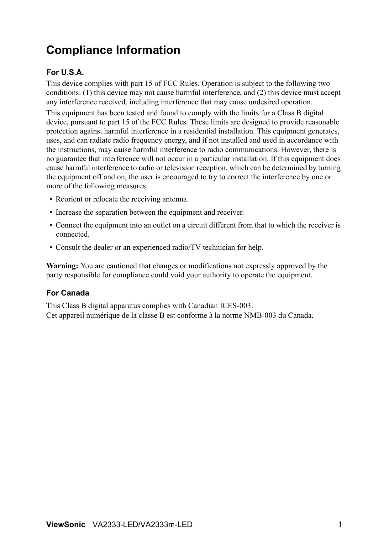 ViewSonic VA2333-LED/VA2333m-LED Compliance Information