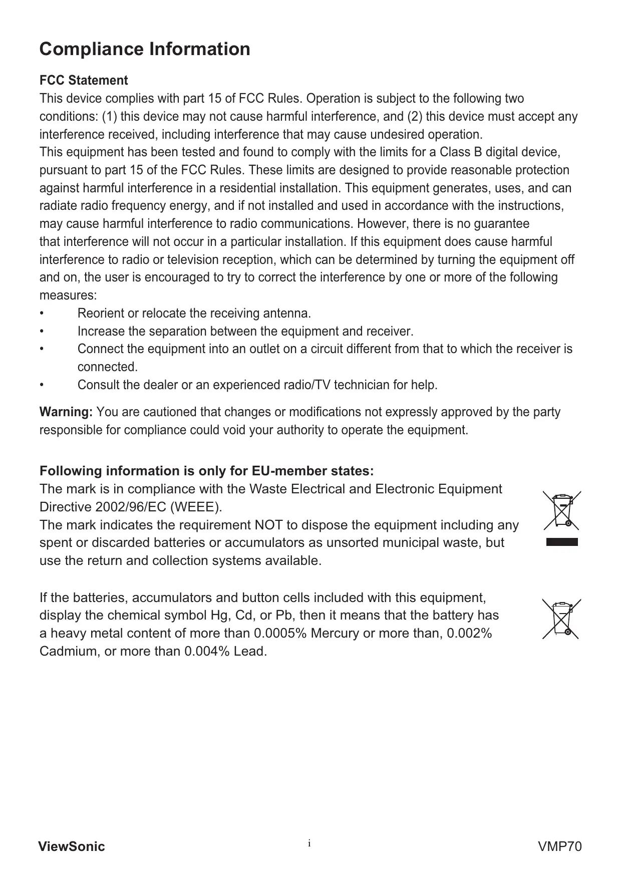 VMP70 - VIEWSONIC - Free user manual and instructions