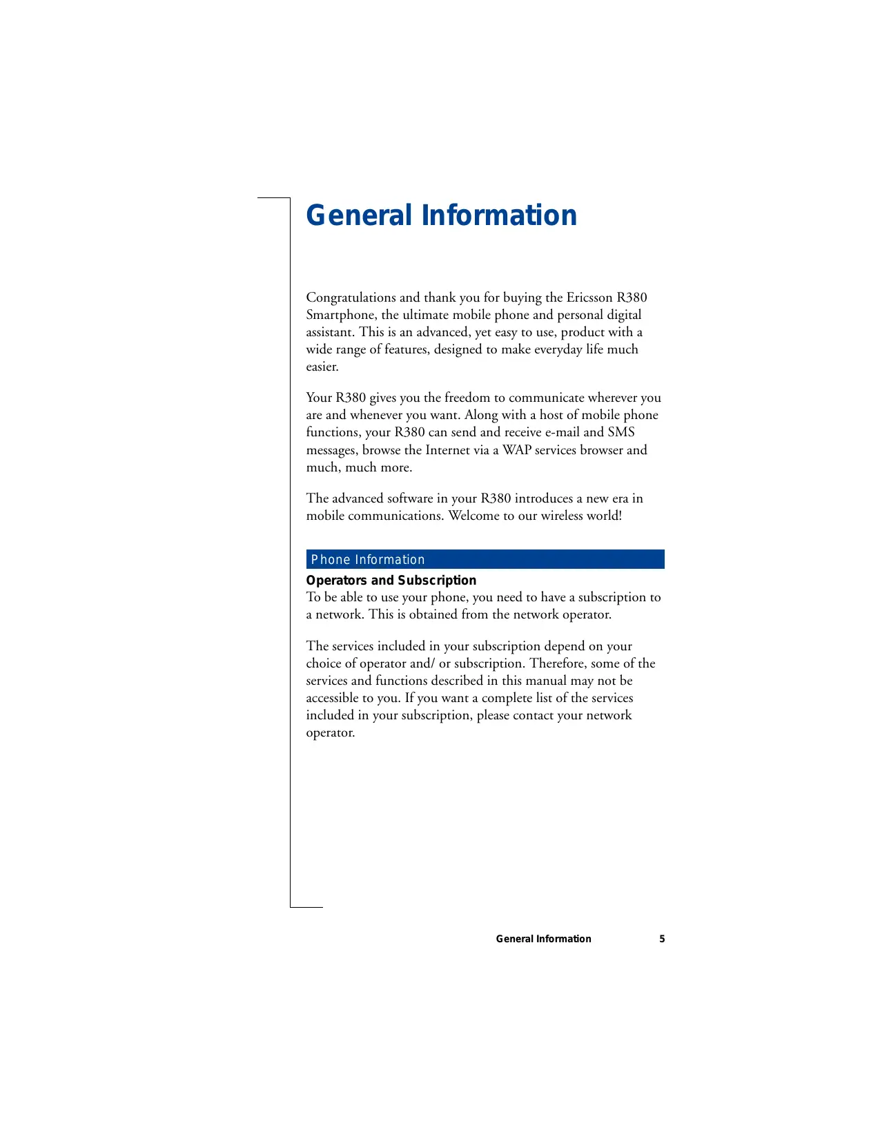 USER MANUAL R380 ERICSSON