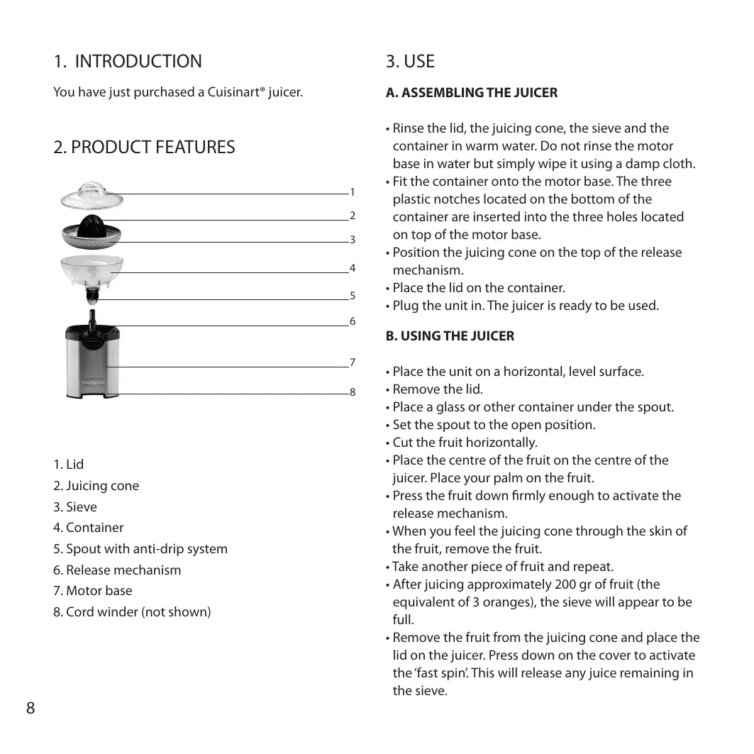 Download the instructions for your Extracteur de jus in PDF format for free! Find your manual CCJ210E - CUISINART and take your electronic device back in hand. On this page are published all the documents necessary for the use of your device. CCJ210E by CUISINART.