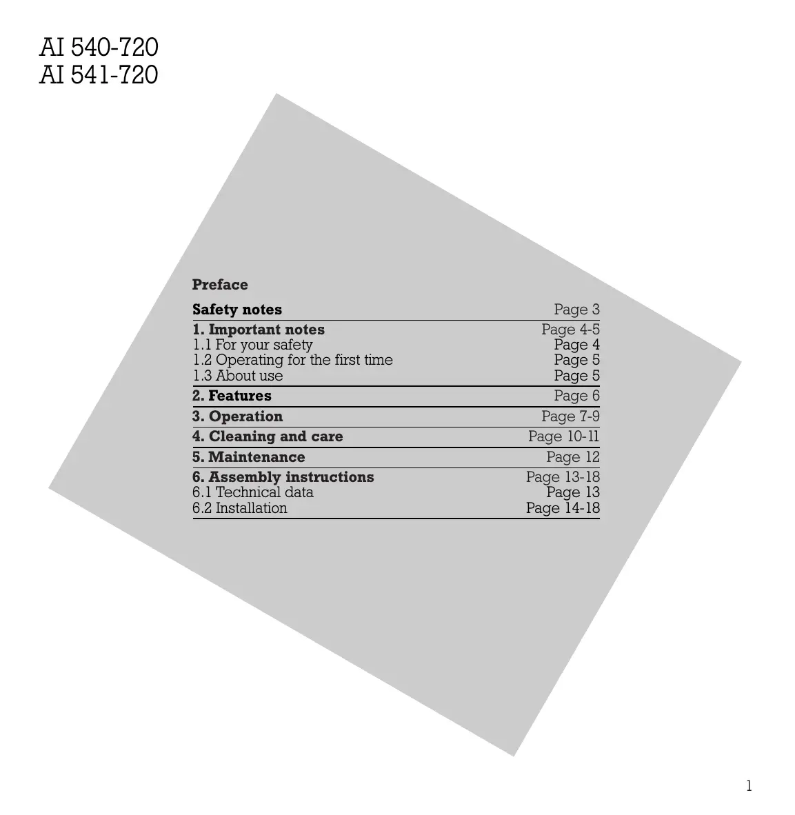 Preface Fig. 1 With your new extractor hood, working in the kitchen will be even more fun. The appliance offers you a number of advantages: — a good extraction capacity with low noise values, — a large number of control functions, — optimum illumination of the cooking surface by a dimmable halogen light. To ensure that you will be able to use this appli- ance in all its diversity read through the operating and assembly instructions conscientiously before operating it for the first time. The instructions contain important notes on use, installation and maintenance of the appliance. On the following page you will find important notes on safety and operation. These will serve to ensure your personal safety and the lasting value of your appliance. You will find notes on page 5 that you ought to observe before operating the appliance for the first time. The chapters entitled “Structure and operating principle” and “Operation” will tell you all the things your extractor hood is capable of doing and how the appliance is operated. Tips and hinis in the chapter entitled “Cleaning and care” will make sure that your appliance will stay operable and beautiful for a long time. And now we wish you lots of fun with your new extractor hood.