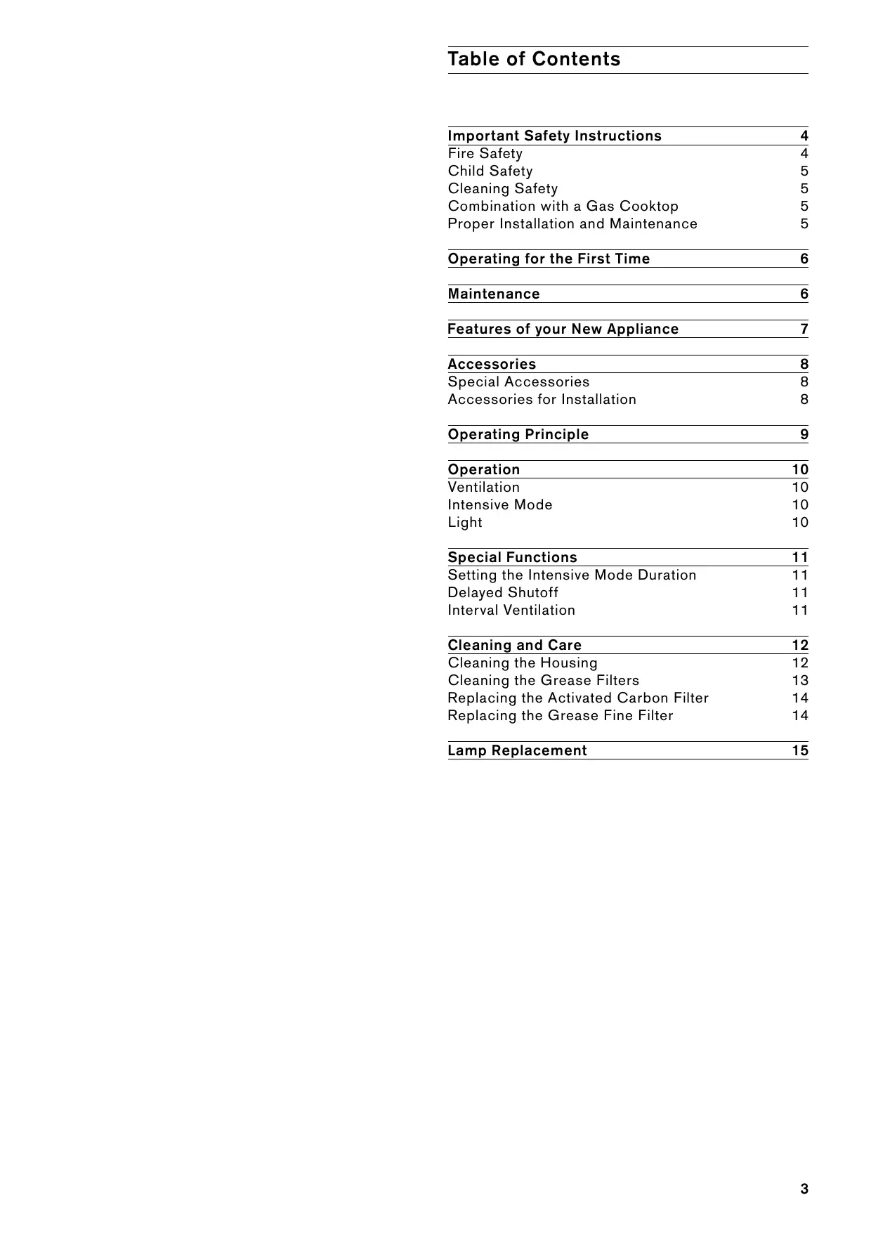 CAUTION – The housing of the backsplash ventilation and the lamp cover will get hot during use.