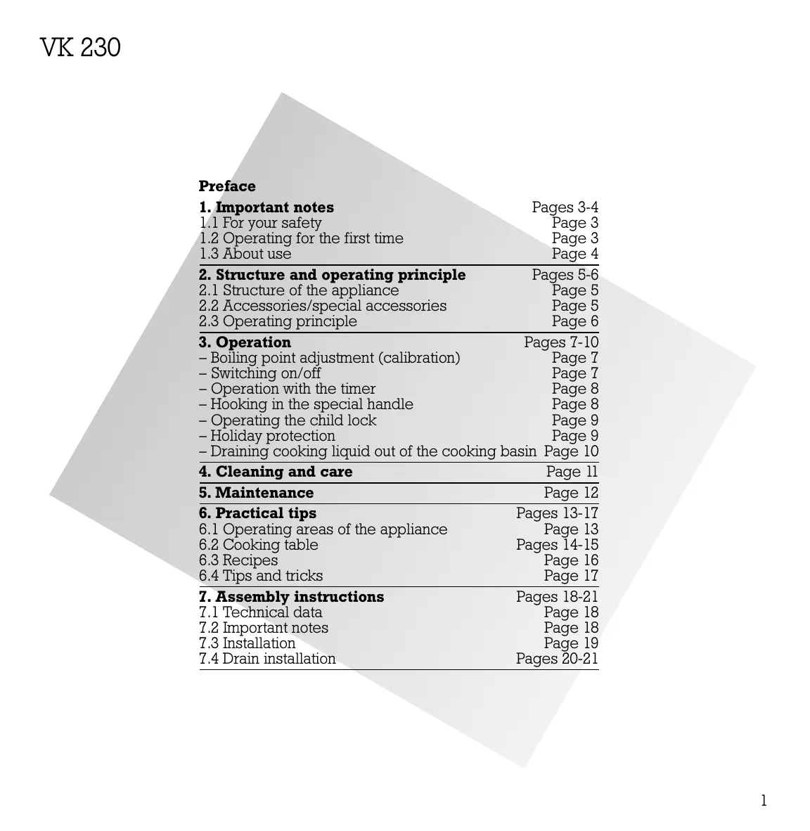 On the following page you will find important notes on safety and operation. These will serve to ensure your personal safety and the lasting value of your appliance.