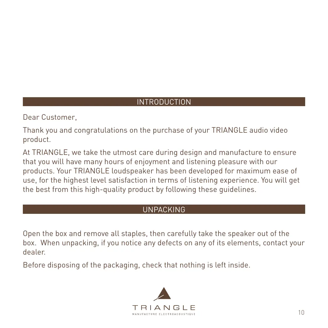 Thank you and congratulations on the purchase of your TRIANGLE audio video product.