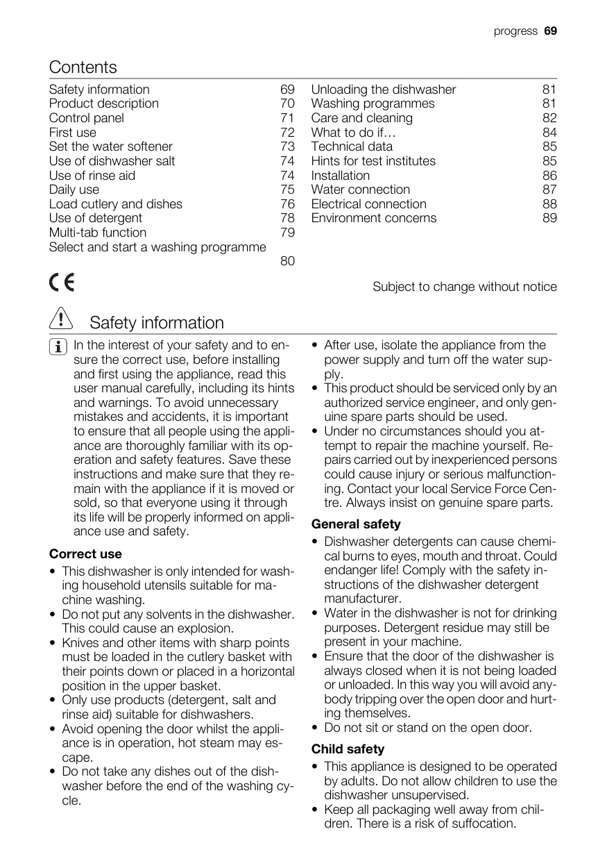 PI3550X - Dishwasher PROGRESS - Free user manual and instructions