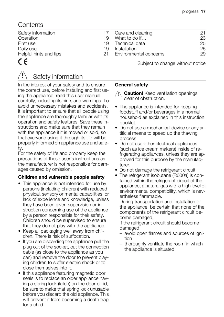 - The refrigerant isobutane (R600a) is contained within the refrigerant circuit of the appliance, a natural gas with a high level of environmental compatibility, which is nevertheless flammable. During transportation and installation of the appliance, be certain that none of the components of the refrigerant circuit become damaged. If the refrigerant circuit should become damaged: – avoid open flames and sources of ignition – thoroughly ventilate the room in which the appliance is situated 18 progress