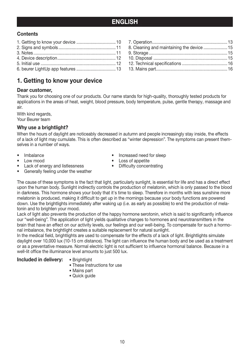 Download the instructions for your Lampe de luminothérapie in PDF format for free! Find your manual TL 100 - BEURER and take your electronic device back in hand. On this page are published all the documents necessary for the use of your device. TL 100 by BEURER.