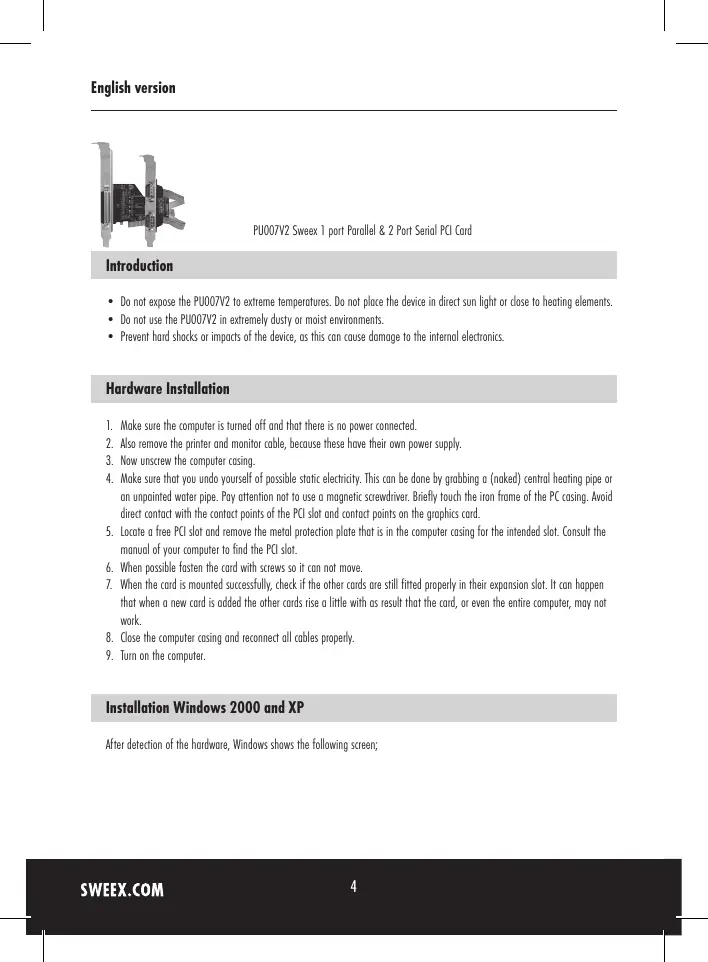 USER MANUAL PU007V2 SWEEX