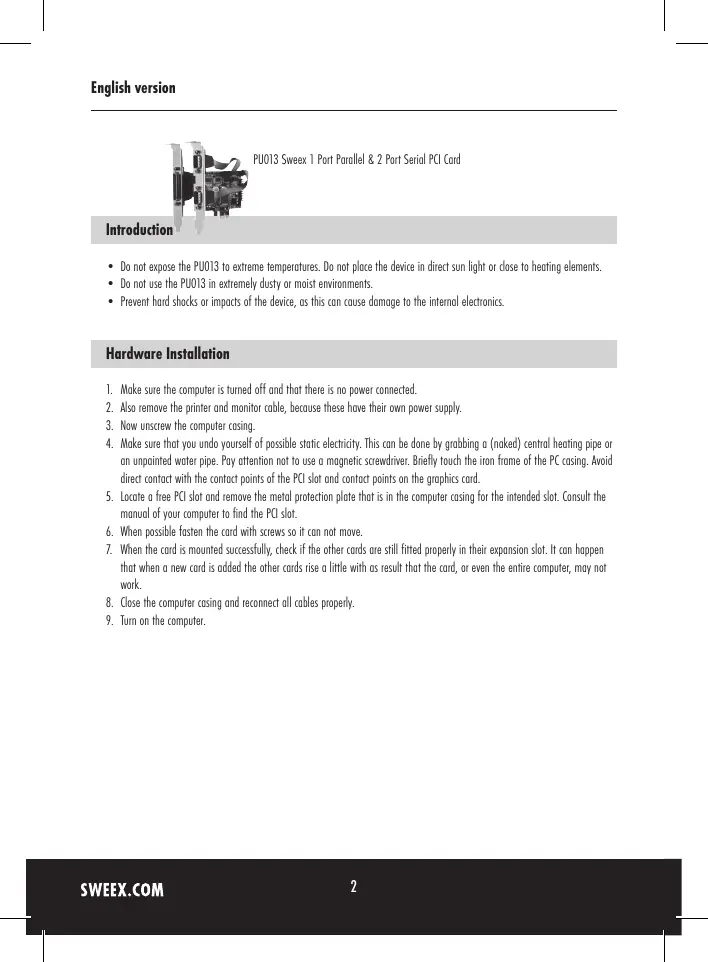 USER MANUAL PU013 SWEEX
