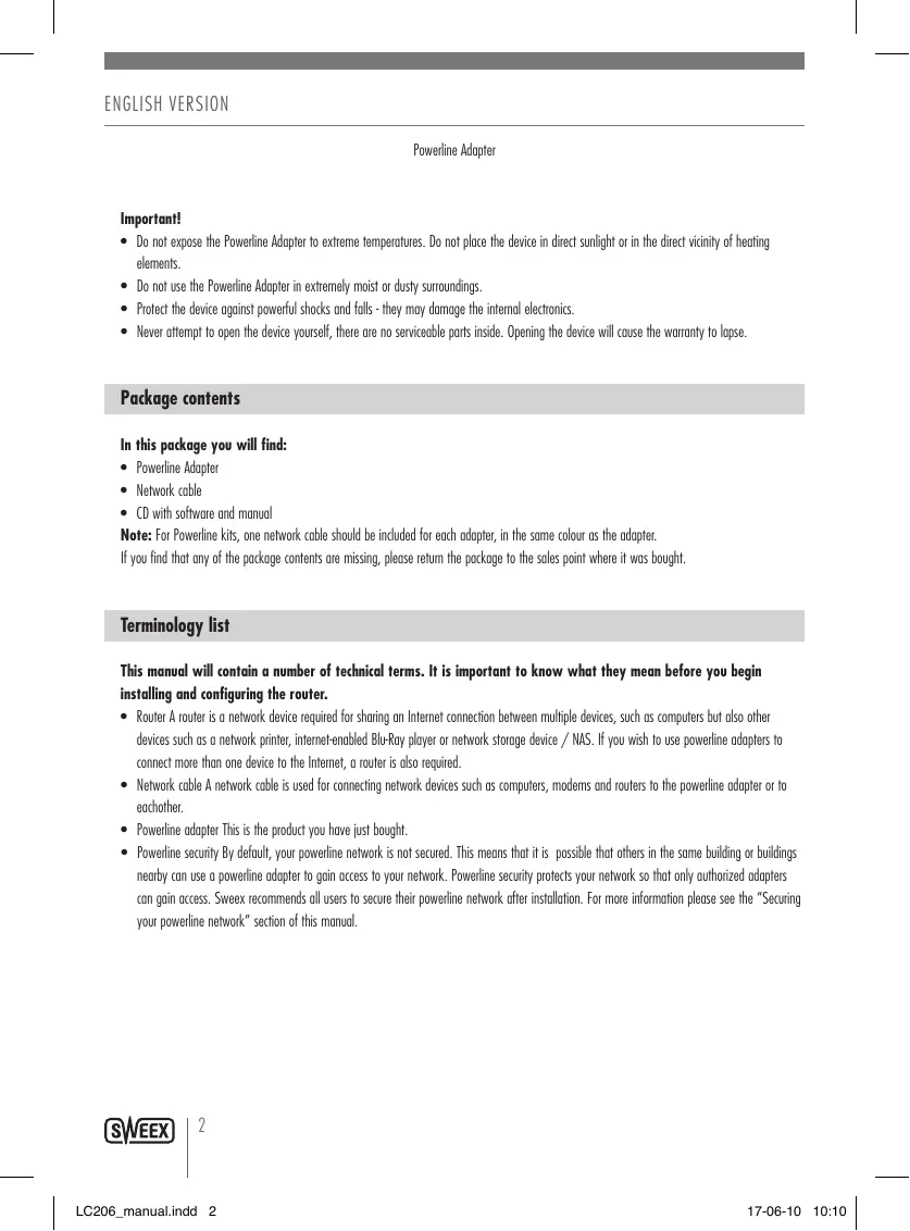 LC206 - SWEEX - Free user manual and instructions